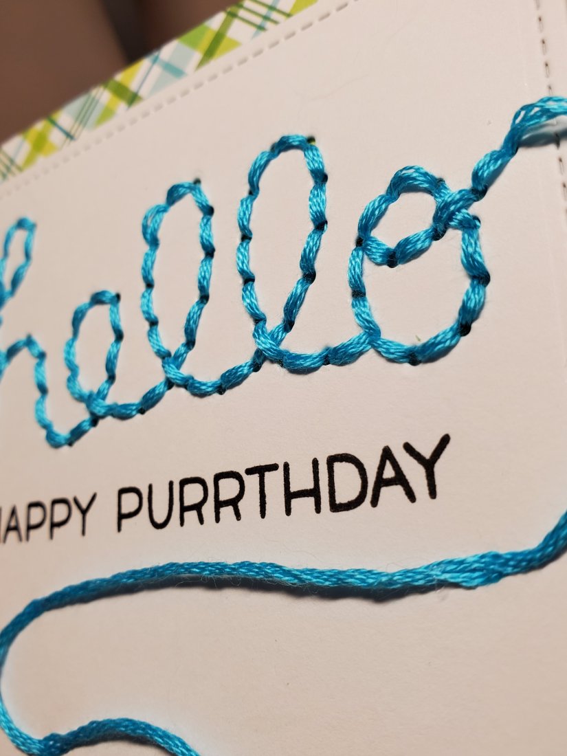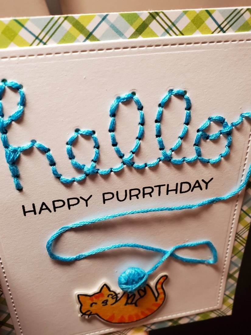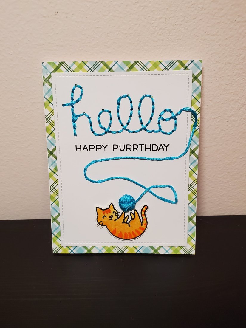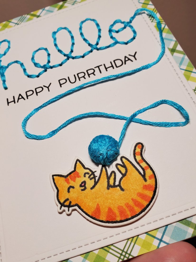 I was planning on making more creative loops with the floss at the bottom of the card, but by the time I got to that point I completely forgot about it. I still think it turned out pretty well though. As a cat lover, I know I would like to receive this card!