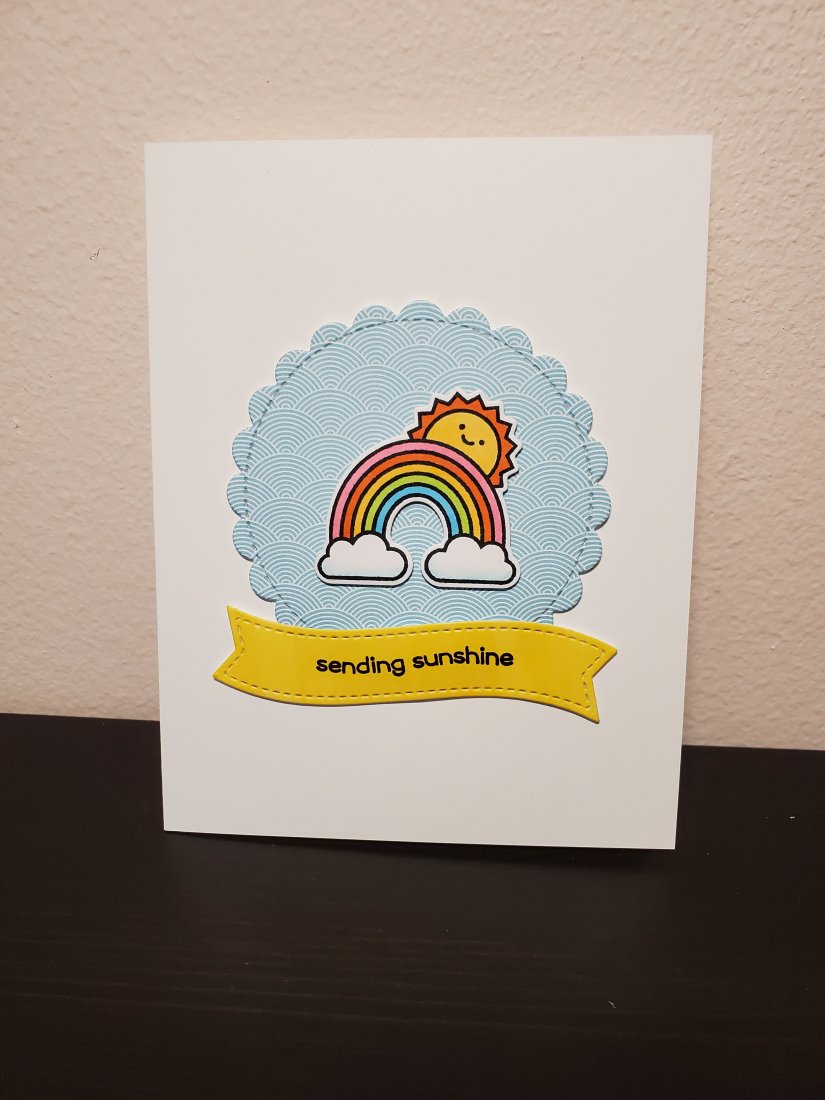 I created this cute card, and kept it simple so that I could make a bunch of them fairly quickly. I’ve been busy making lots of cards with all the extra time at home due to the COVID-19 pandemic, and today I mailed out my first batch. I think it’s a great way to send people a little warmth and happiness during these crazy times, and hopefully it brings a smile to their faces.