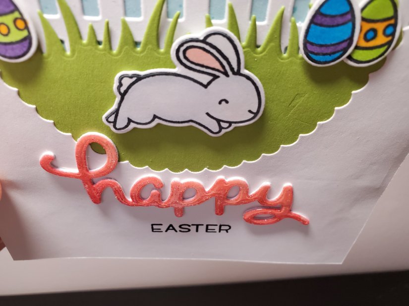 I still can’t get enough of those 3D sparkly “jelly” words! I die cut the scripty word 4 times, glued them together, colored it with a copic marker, heat embossed it with clear sparkle embossing powder, and then added glossy accents to the top. Still my favorite way to add an accent word to a card. 🙂