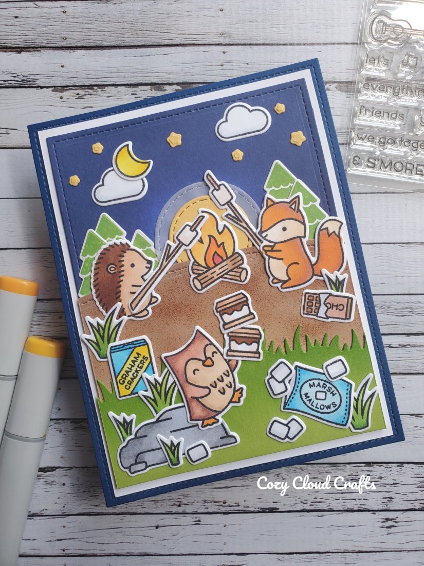 I love the halo around the fire – I saw this on the Lawn Fawn blog and loved the idea. I think it adds so much more to the scene!