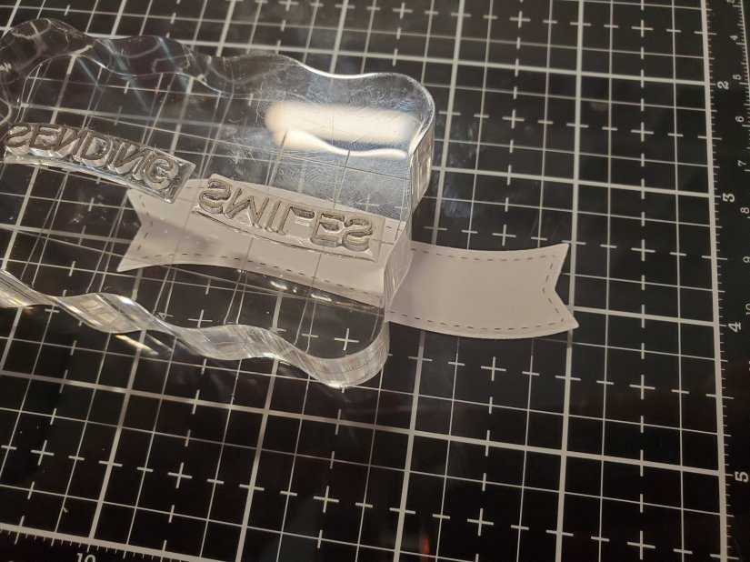 Here’s a quick tip for how to arrange a stamp on a wavy banner so that it follows the curve of the banner:
