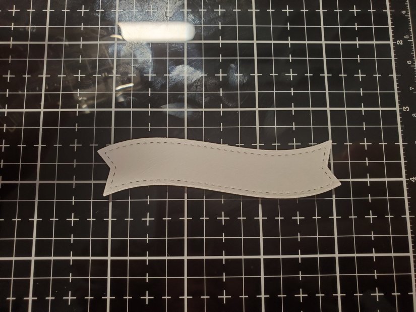 Start by laying your die-cut banner down face down. The side you will be stamping on should be touching your craft mat or surface.