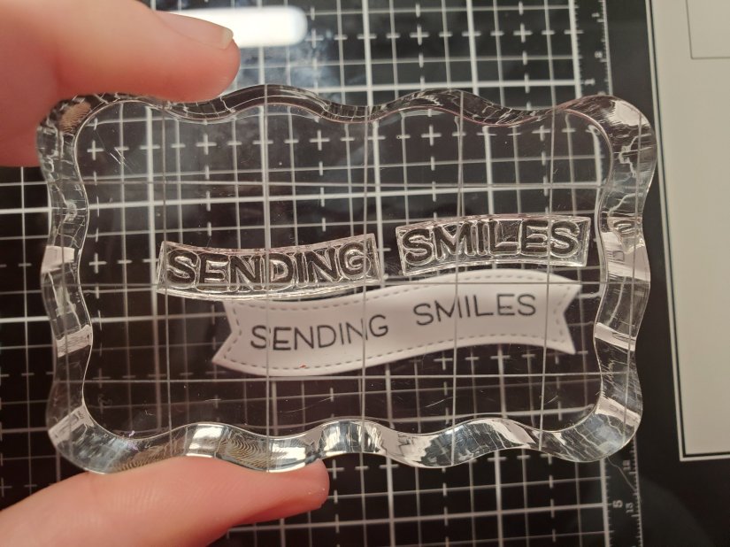 Keep arranging the stamps until you can see that they match the curve of the banner underneath.