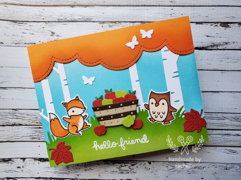 This card ended up looking a little more “simple” than I wanted; I wish I had added more detail to the sky or trees. It also bugs me that everything isn’t perfectly centered, but in general I still get good fall vibes from it.