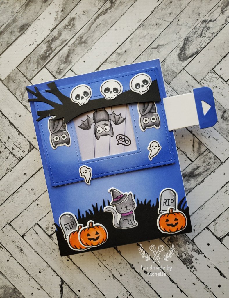 I made this card using the Halloween Fun stamp and die set from Hello Bluebird. I saw this type of design online somewhere once and wanted to try and make my own. Mine is definitely not as good as the original I saw but I think I could make some improvements if I tried it again. 🙂