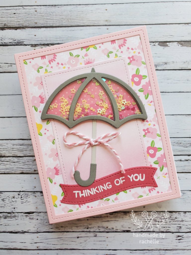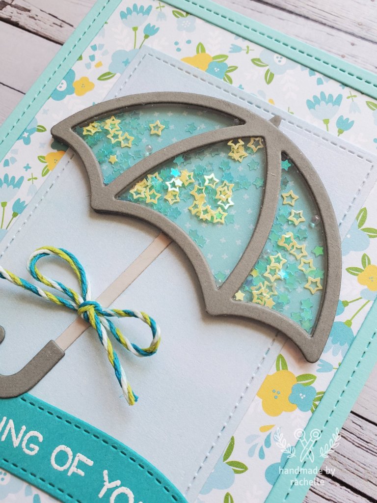 It was actually the very first shaker card I’ve ever made. I wasn’t very interested in shaker cards until I tried it, and now I see how much fun they are! I could see someone receiving this card who’s maybe going through a hard time, and having that tiny extra element bring a smile to their face.