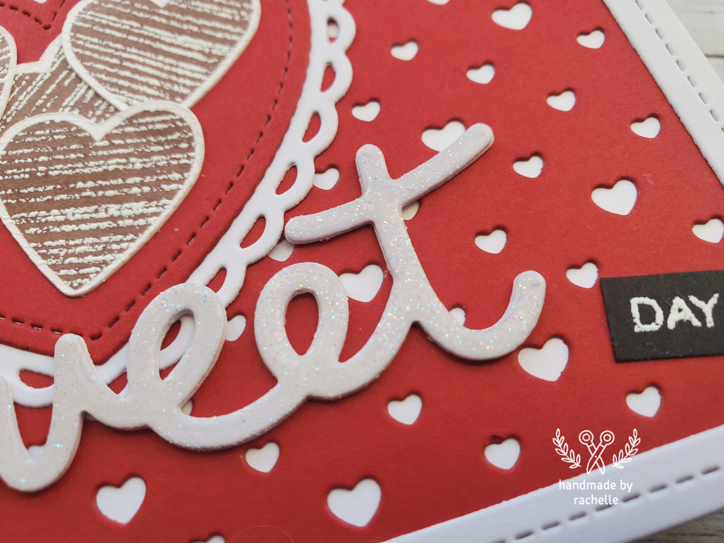 This card was supposed to resemble a box of Valentine’s chocolates… but I don’t think the idea really came across. I wanted to add little wrappers behind the hearts but didn’t have time. Oh well! It did reawaken my love for the Polka Heart Backdrop. 🙂