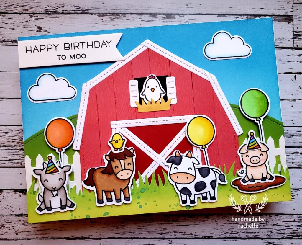 I was surprised just how much I ended up liking this card. I think it’s because it’s a bigger card and the barn fills up so much of the space that it really sets the scene. And the colors are bright and classic, and it’s just cute!