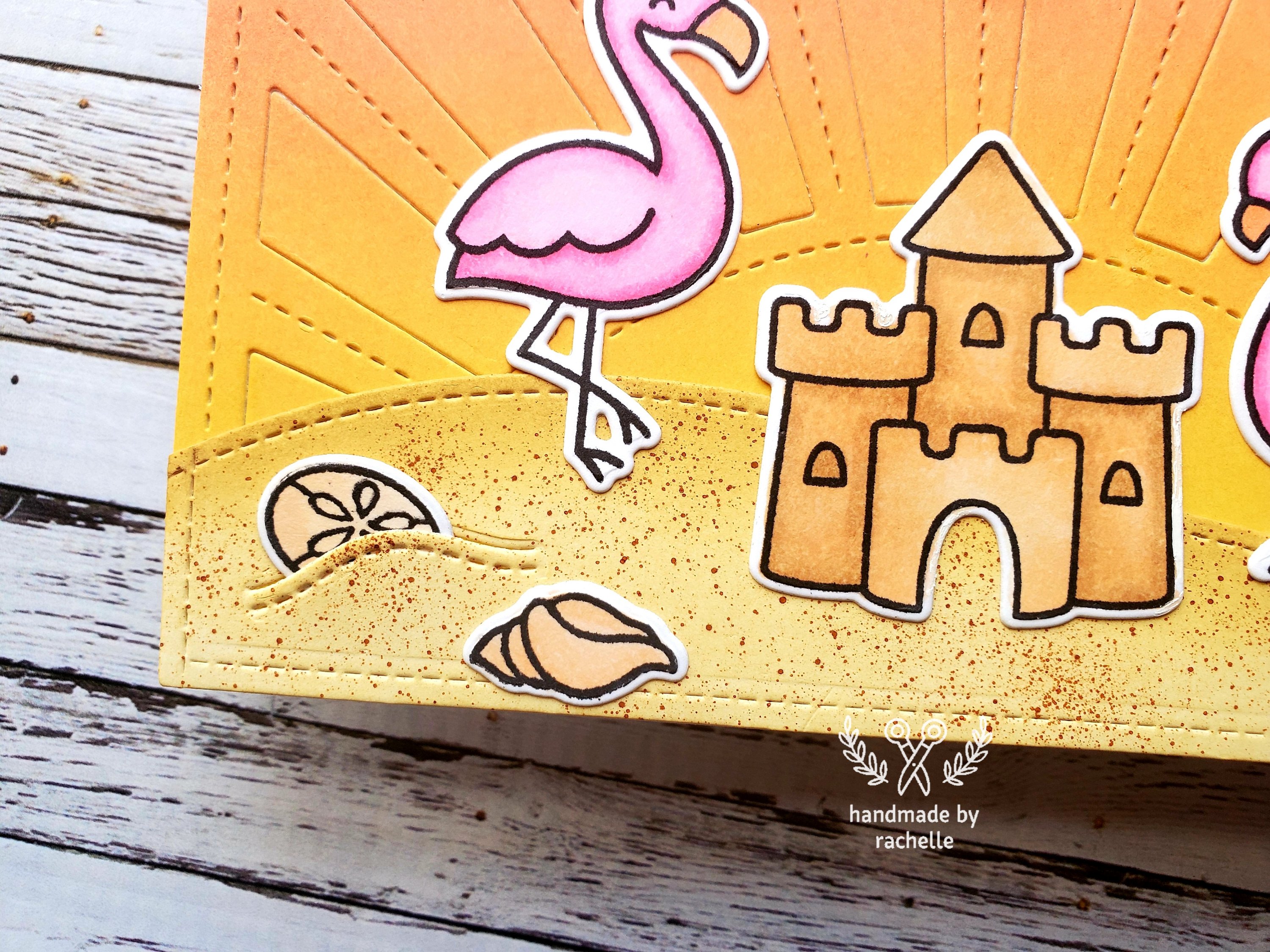 And of course I had to include a close up of the sand because I get excited EVERY single time I make sand on a card! I think it looks pretty realistic and it definitely makes me want to visit the beach!