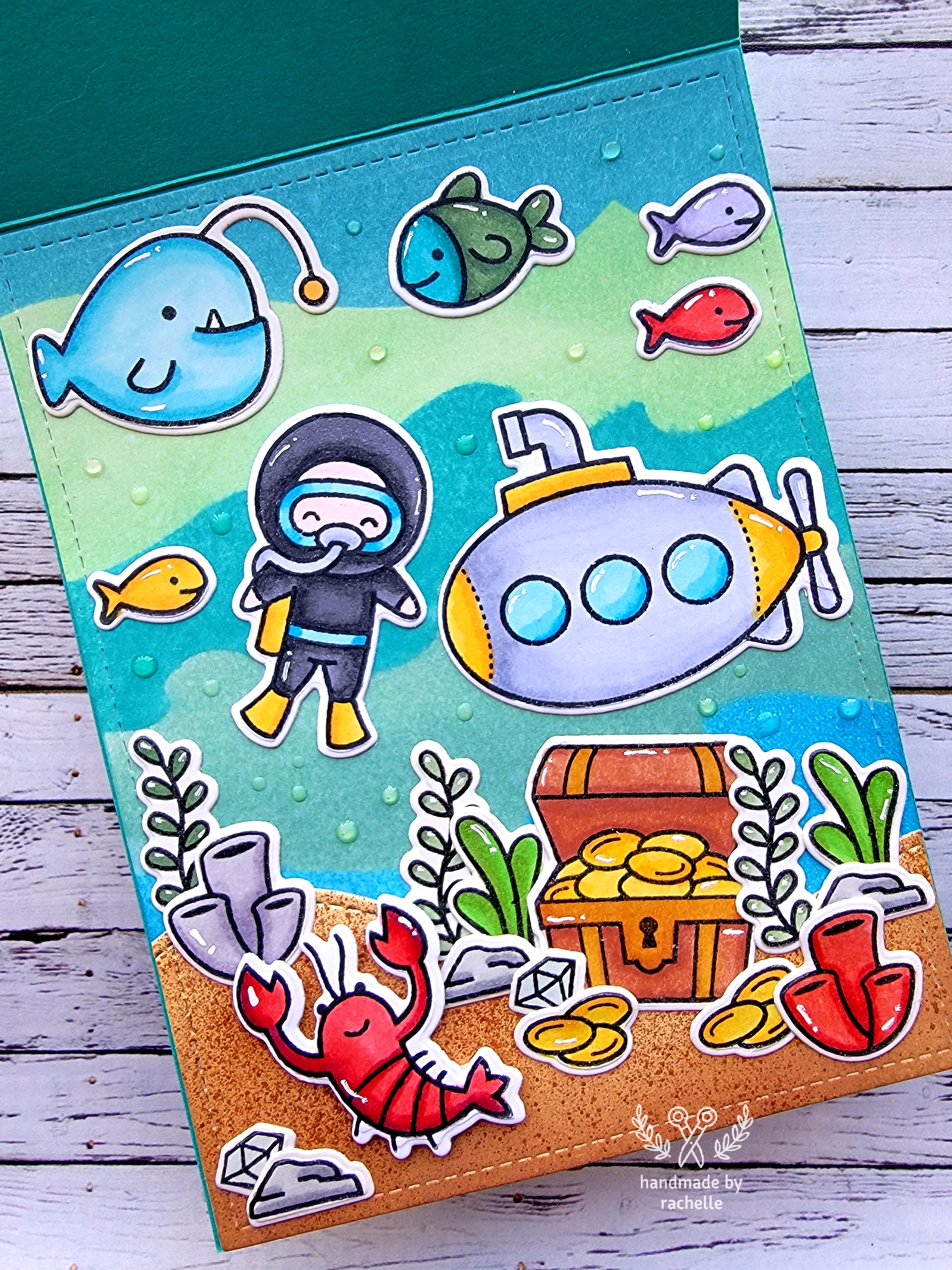 - Distress oxide inks: Broken China, Cracked Pistachio, Peacock Feathers, Evergreen Bough, Salty Ocean