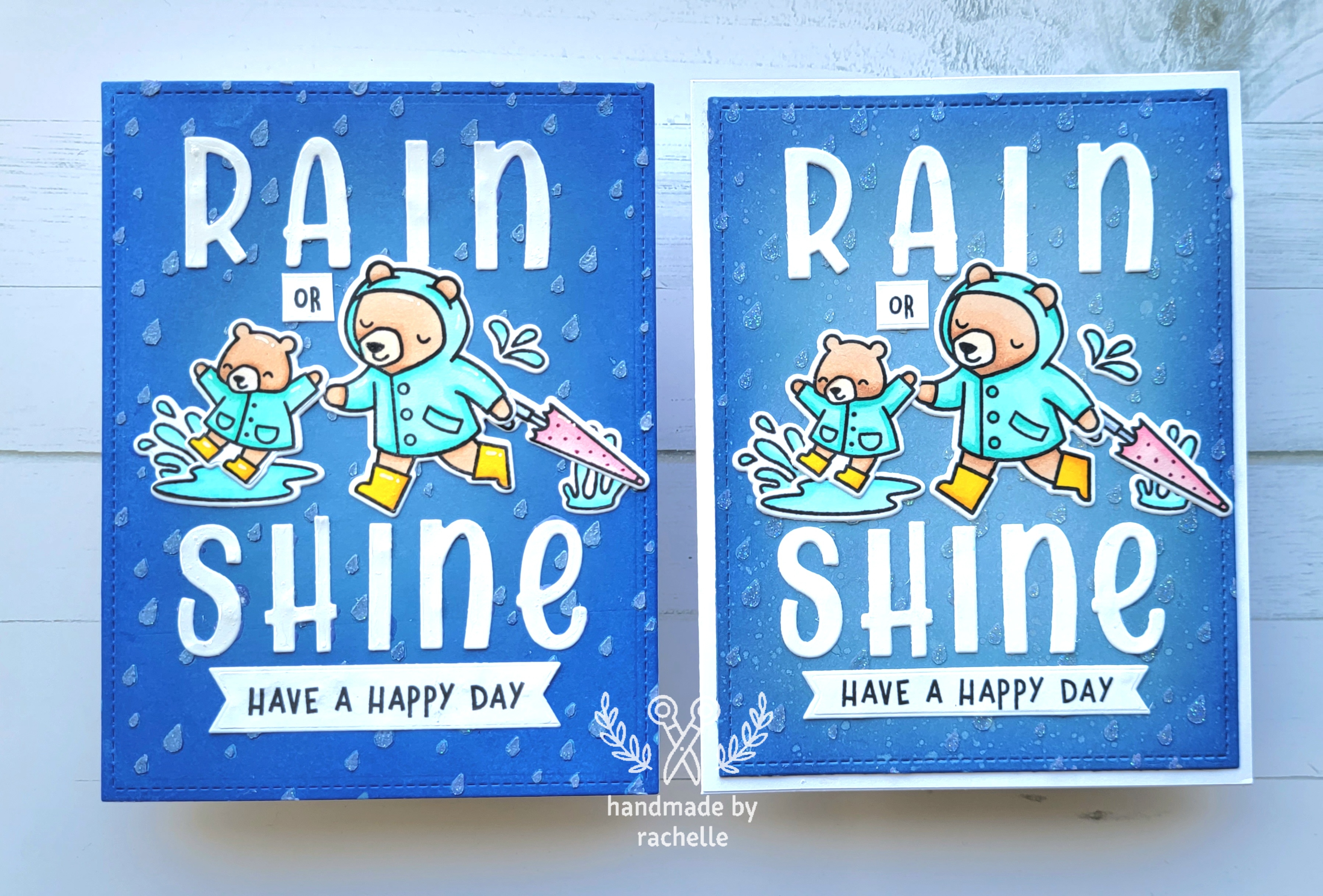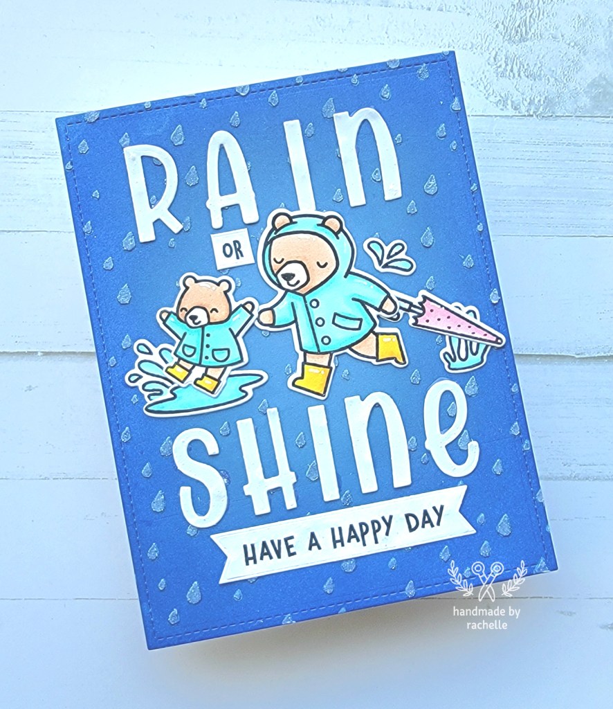 This is a re-make of a card that I made recently. The blog post with the first version is here: https://handmadebyrachelle.com/2022/04/06/beary-rainy-day/