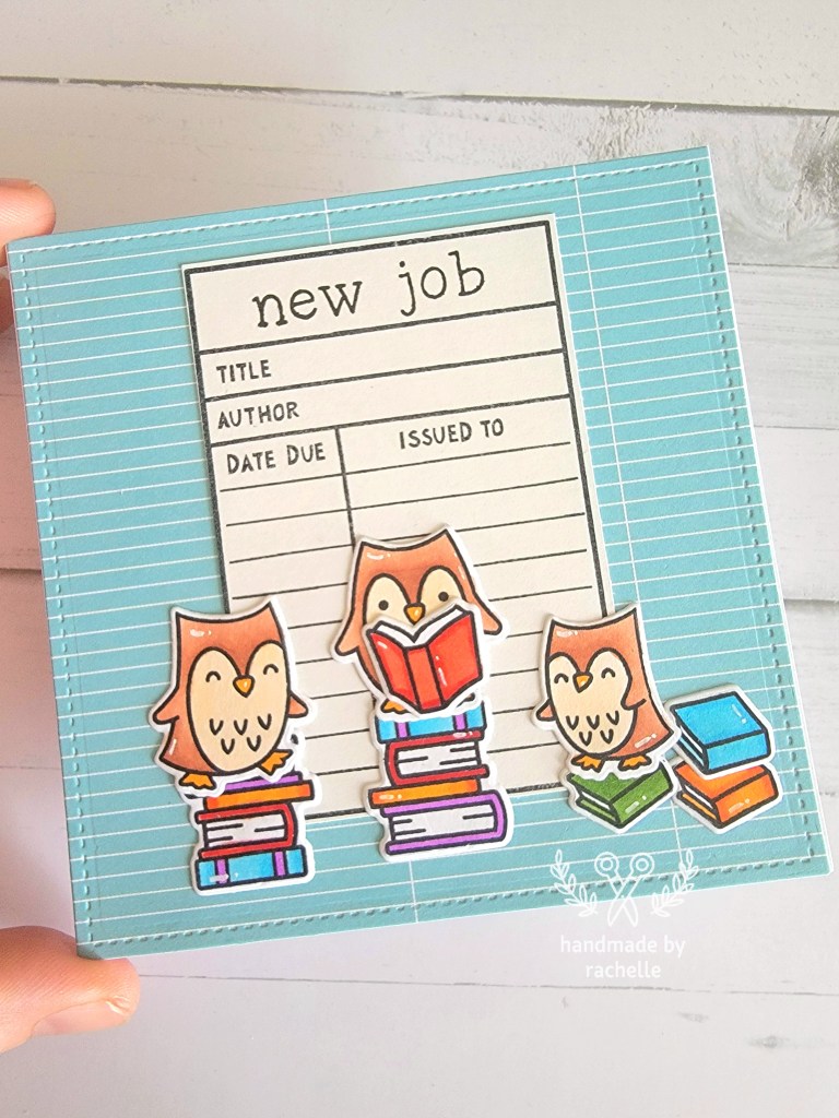 This library card stamp is an old retired set from Lawn Fawn. I had been feeling like I wouldn’t find a good way to use it but I saw this design and thought it would be perfect to recreate. That patterned paper in the background is also one I had a hard time finding a way to use but it fits well with this idea.