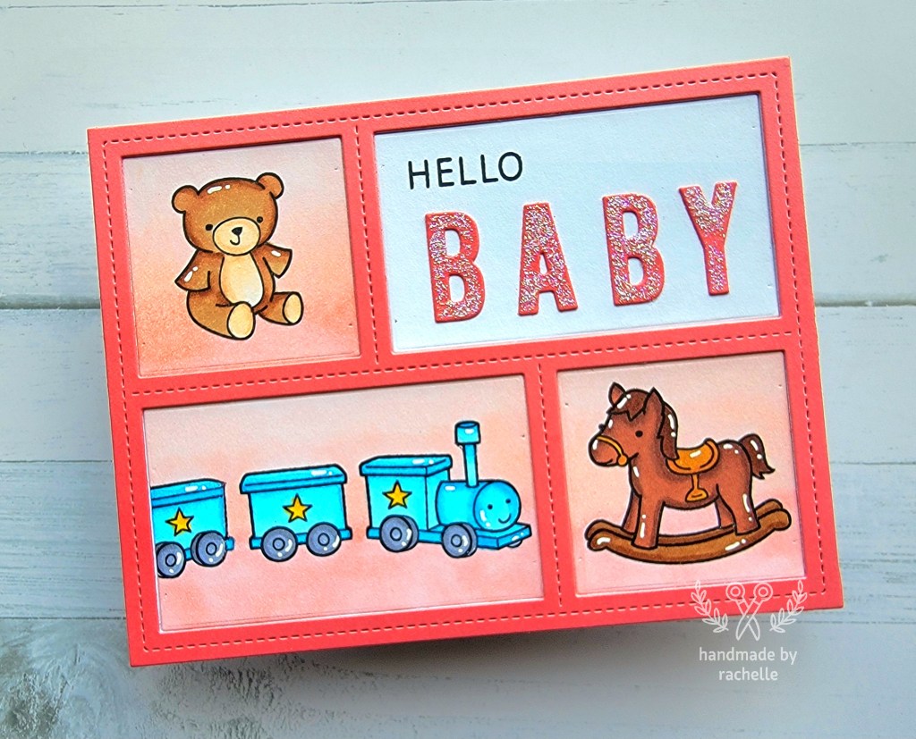 This is a very very old and retired Lawn Fawn set (so old that it never even had matching dies created) that I decided to use for a baby card. I didn’t want to fussy cut the images so I kept things very simple.