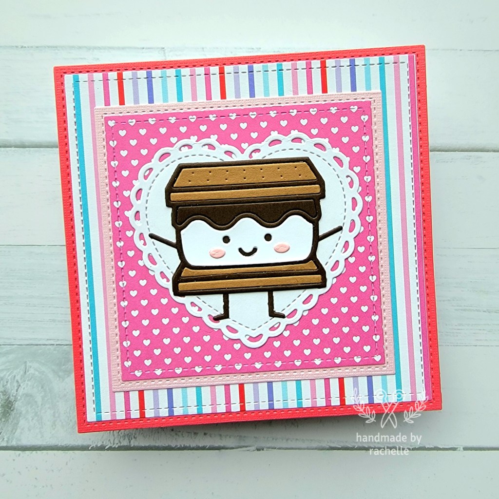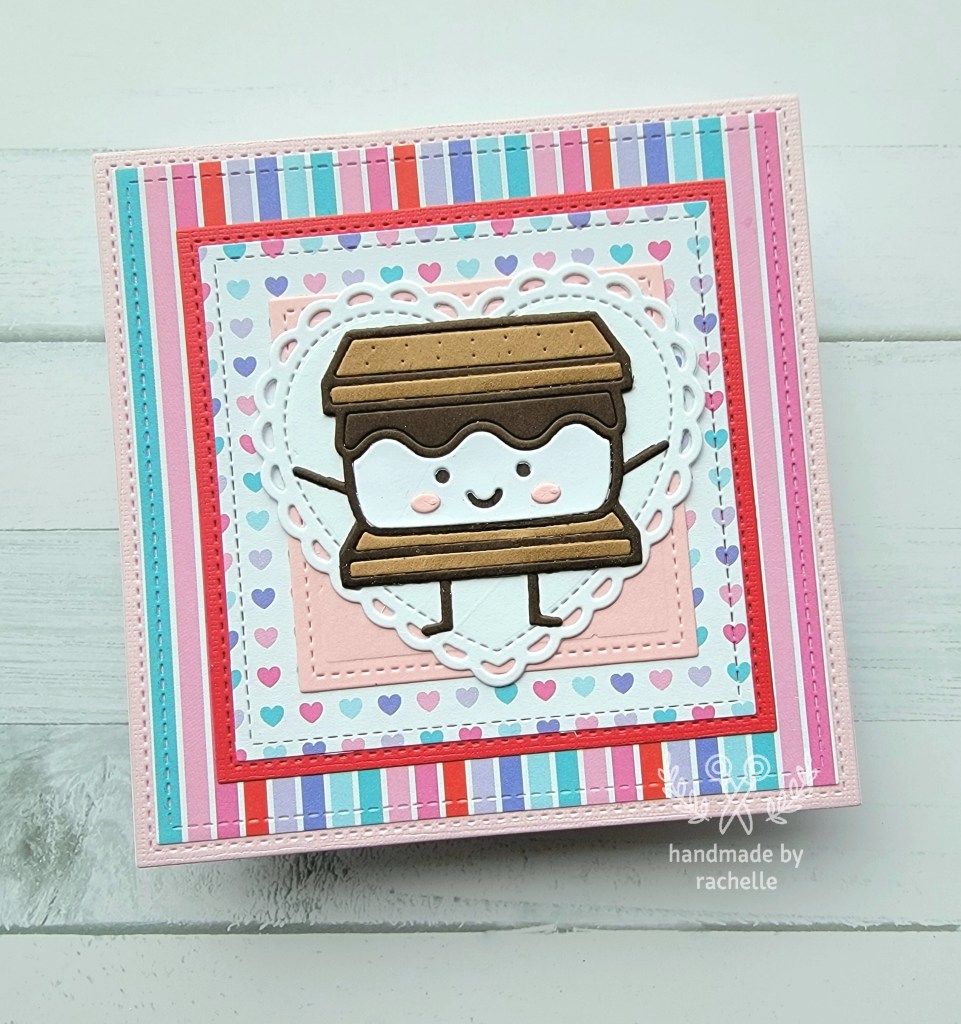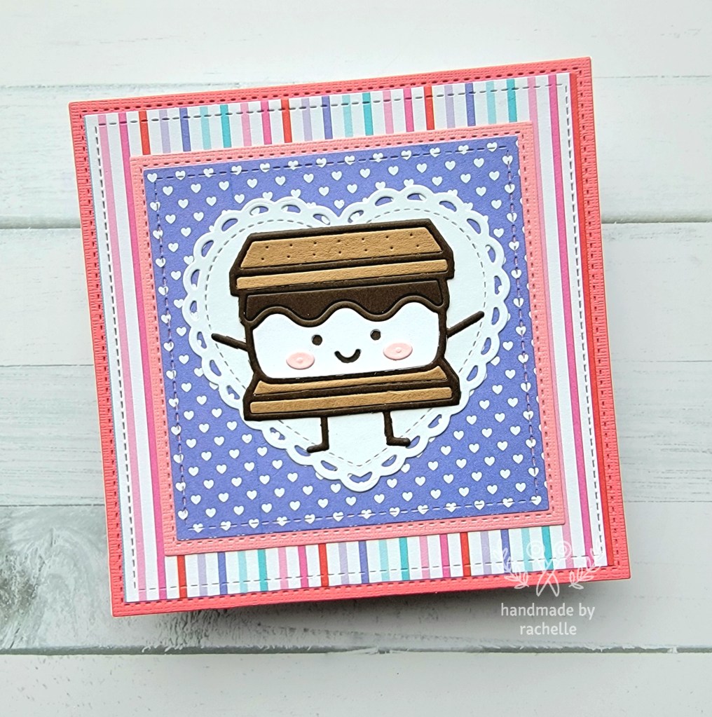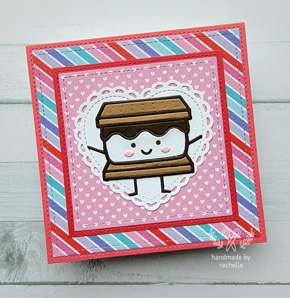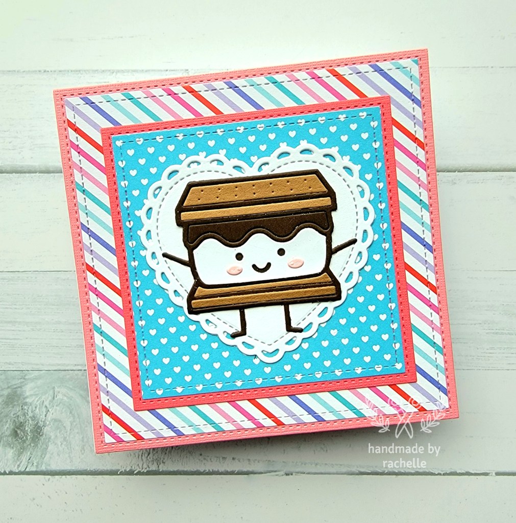 These cards came about because I had an old paper pack lying around that I never seemed to be able to use up. The colors were somewhat hard to match to other supplies that I had so I figured I would finally use the remaining sheets together and finish out the pack once and for all. I wasn’t sure if I would like the end result but I actually do think these turned out pretty cute. The little s’more is a great centerpiece and it feels so so good to finally use up the paper pack. I’m going to try and do the same thing with other packs I have that are hanging on with just a few sheets left.