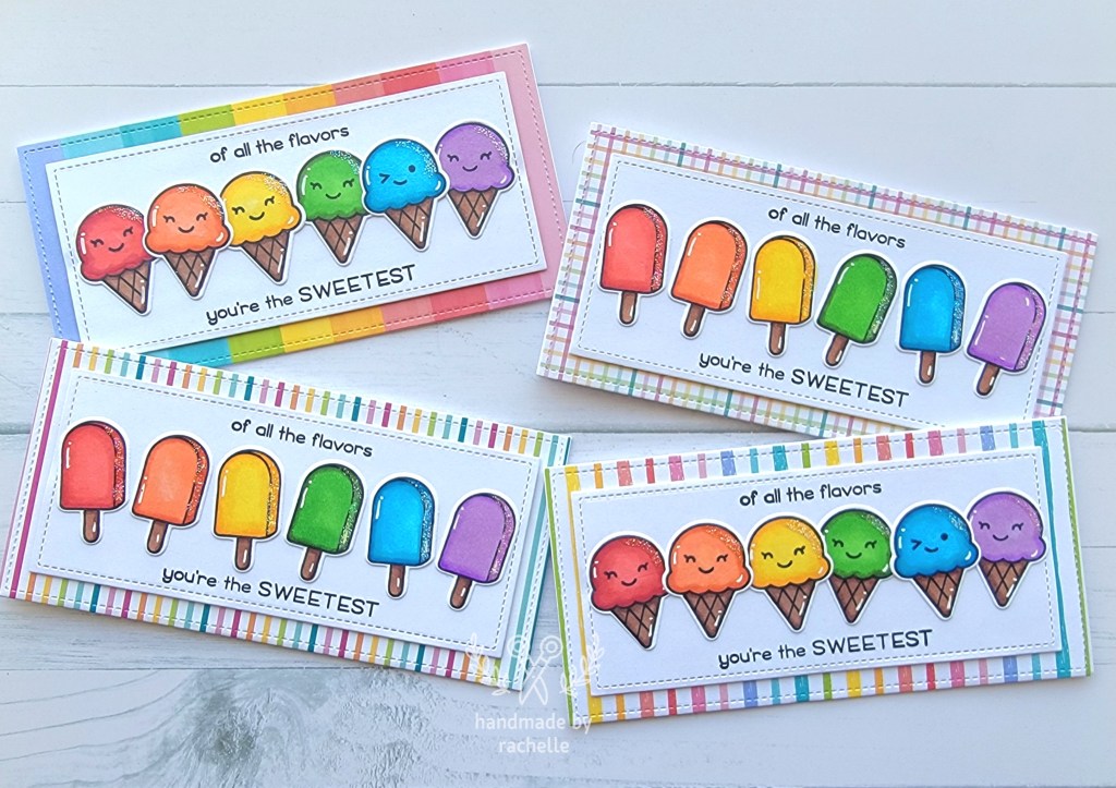 I had two paper packs with only a few sheets left on them so I made some rainbow themed cards to use them up!