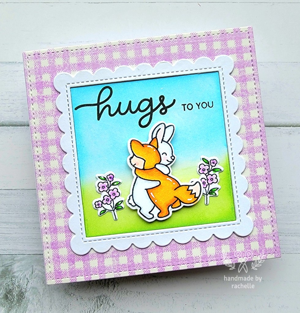 I was really excited to get this Country Gingham background stamp from Hello Bluebird but oh. my. gosh. was it HARD TO USE! It’s just a background stamp so it should have been pretty easy but the one I used on my card was literally my fourth attempt because all the other ones looked terrible.