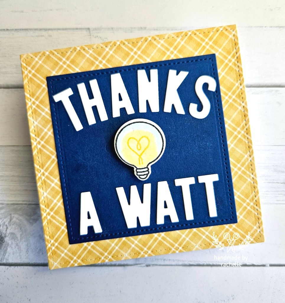 Card Making, Copic markers, Crafts, Homemade, Lawn Fawn, Thank YouThanks A Watt April 20, 2023 Rachelle Materials used: Large Stitched Square Stackables Perfectly Plaid Chill paper Cole’s ABCs Blue Jay cardstock Turn Me On Share this: Click to share on X (Opens in new window) X Click to share on Facebook (Opens in new window) Facebook Like Loading... Related