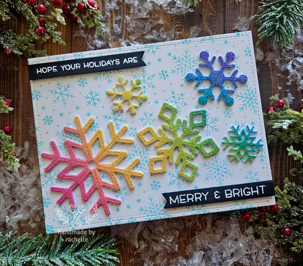 This was a remake of a card I made 2 years ago: https://handmadebyrachelle.com/2021/12/17/cheery-bright-snowflakes/
