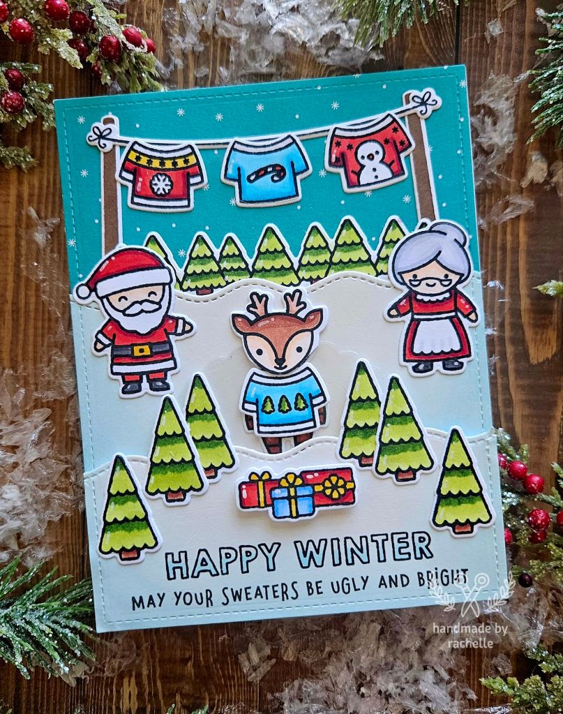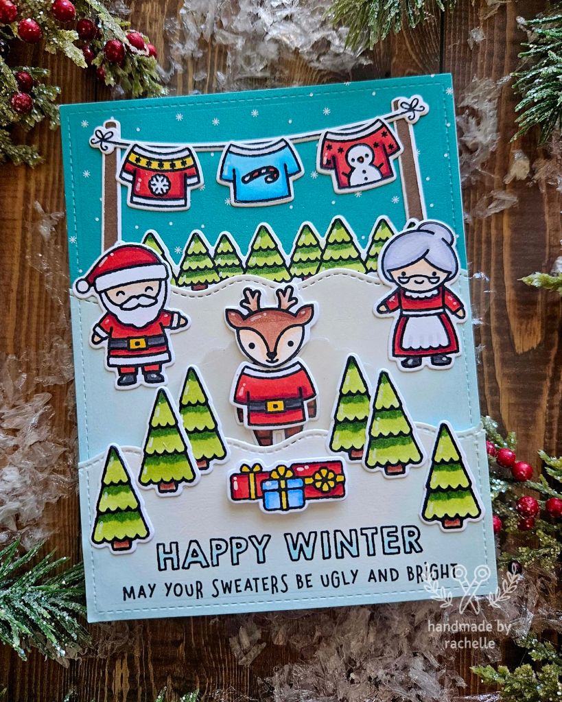 I hope that helps explain the most technical part of this card. All of the supplies can be found at the link above from last year’s version, except I didn’t use the giant tree this time like I mentioned.