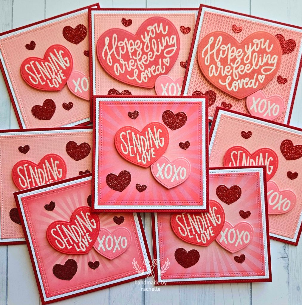 Valentine’s are some of my favorite cards to make. I love the red sparkly hearts and the red, white, and pink color scheme. I tried out a bunch of different combinations with these cards but I still feel like maybe I could have added more to them.