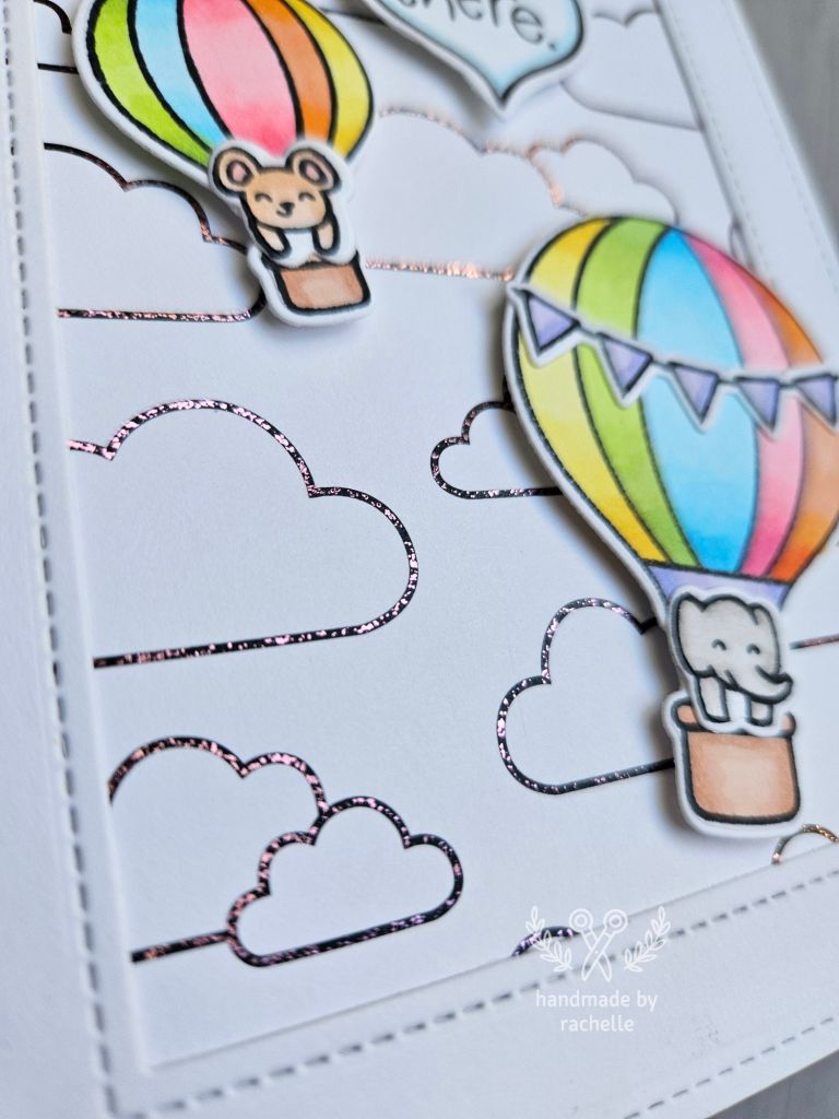 I recently got the Chit Chat stamps in a bundle with some other stamps so I wanted to put it to use with some pink foiled clouds I had attempted. I really struggled with whether or not to add color to the sky, and with how to improve this card in general.