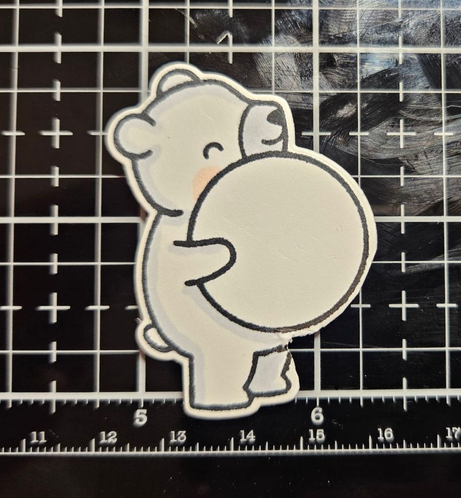 4. Take the piece with the negative space (the piece on the left in the picture above) and place the Little Snow Globe Bear behind it. Line up the circle of the snow globe with the cut out circle.
