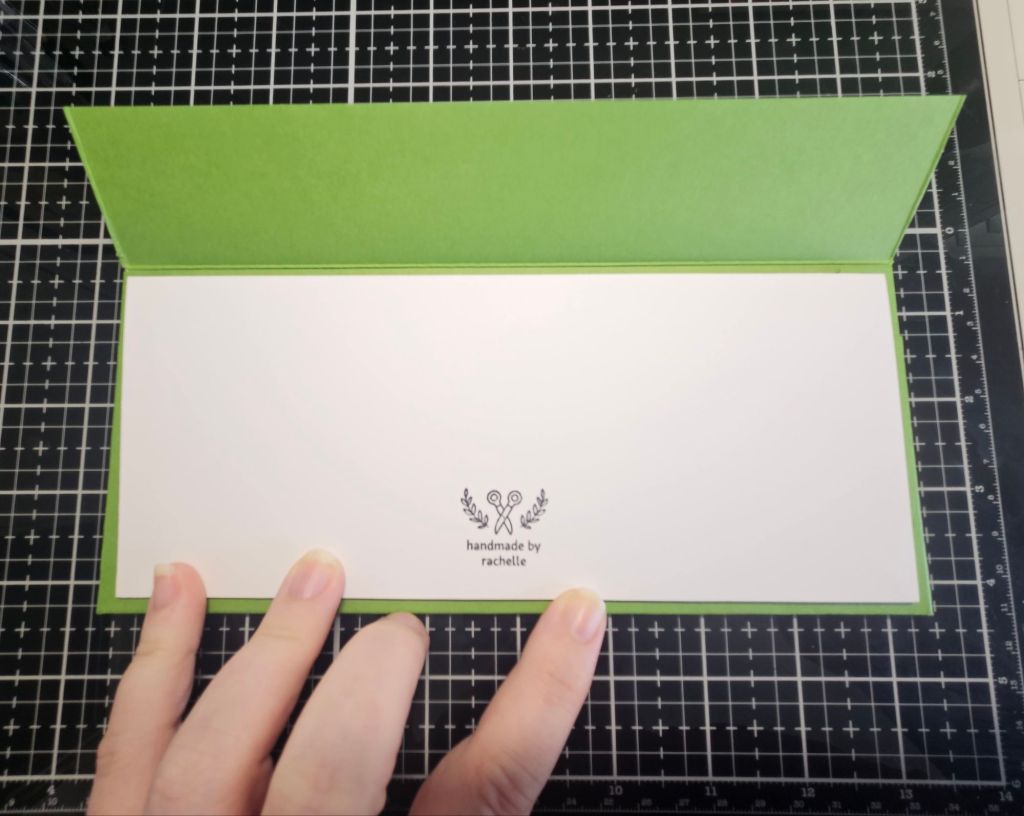 I made my own envelope for a full size slimline card for the first time and wanted to share the steps I followed. My card was 8 1/2″ x 3 1/2″ and I thought that was pretty standard but I didn’t see that size on my envelope punch board.