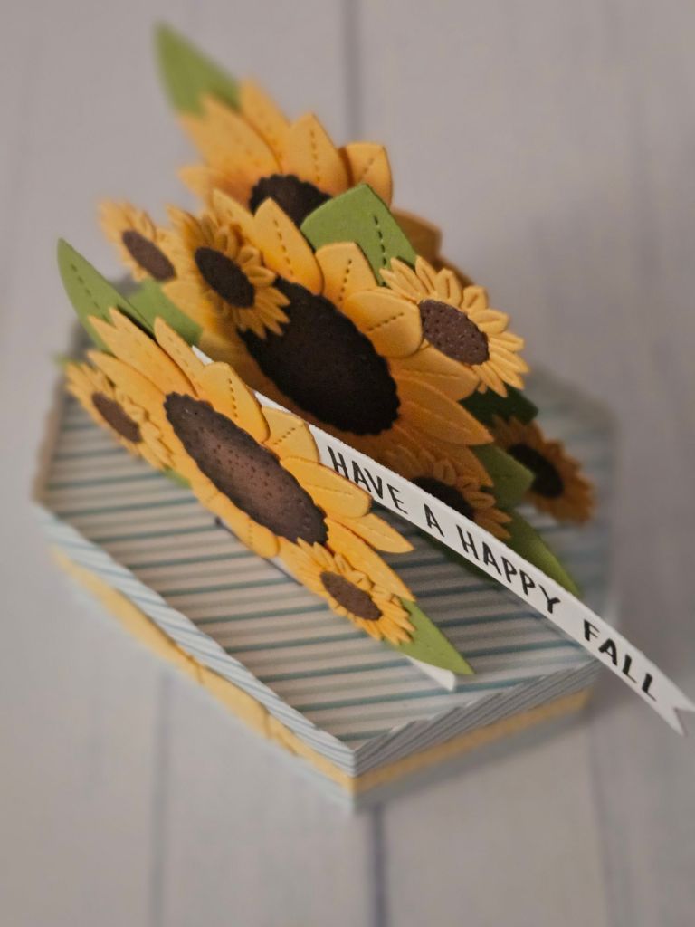 I wanted to use the new Sunny Sunflower die and I like it, but my placement on this card was off. Everything ended up in the middle so it was blocked from view too much. I wanted to stagger them but forgot while assembling. Oh well. I still think the sunflowers are pretty and I’m looking forward to using them on future cards.