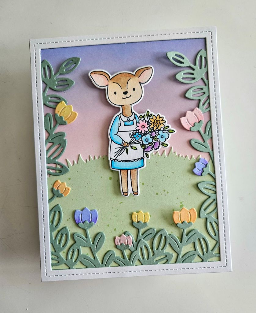 Anytime, Card Making, Copic markers, Crafts, Hello Bluebird, Homemade, Lawn Fawn, SympathyFlower Friends November 29, 2024 Rachelle Materials used: Large Stitched Rectangles Distress oxide inks: Shaded Lilac, Spun Sugar Mushroom Border Spiffy Speckles paper Flower Garden Backdrop Sage Leaf cardstock Stitched Rectangle Frames Flower Friends by Hello Bluebird Share this: Click to share on X (Opens in new window) X Click to share on Facebook (Opens in new window) Facebook Like Loading... Related