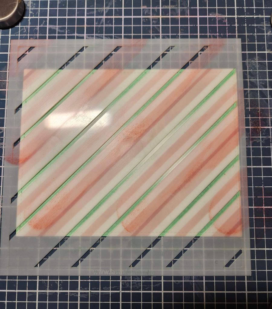 I remade this design by Grace because I thought it was cute. I really liked how she used the Plaid Stencils to create just a striped design in the background.