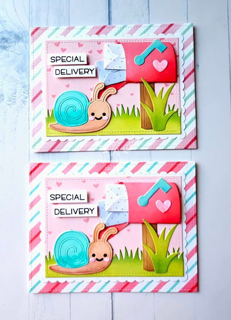 I like the lighter inks better for this version but I would love to see what other color combinations look like too. Here is the ink to Grace’s original card: https://blog.lawnfawn.com/2025/02/graces-happy-mail-valentine-card/