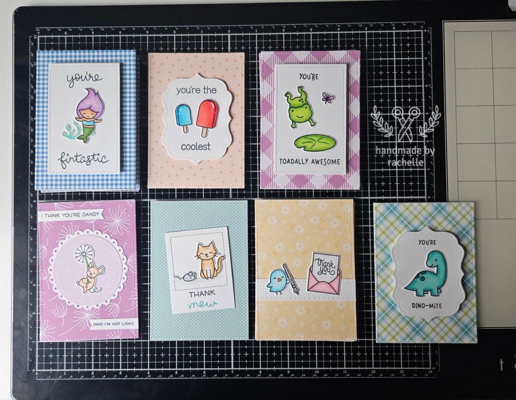 I recently made a big batch of thank you cards in the 4 Bar / A1 size. It’s the perfect size for creating little vignettes and I think they turn out so cute. It’s nice for something like thank you cards where you might be making a lot at once, since they can still look cute without having to do all the extra steps to make a background and an entire big scene.