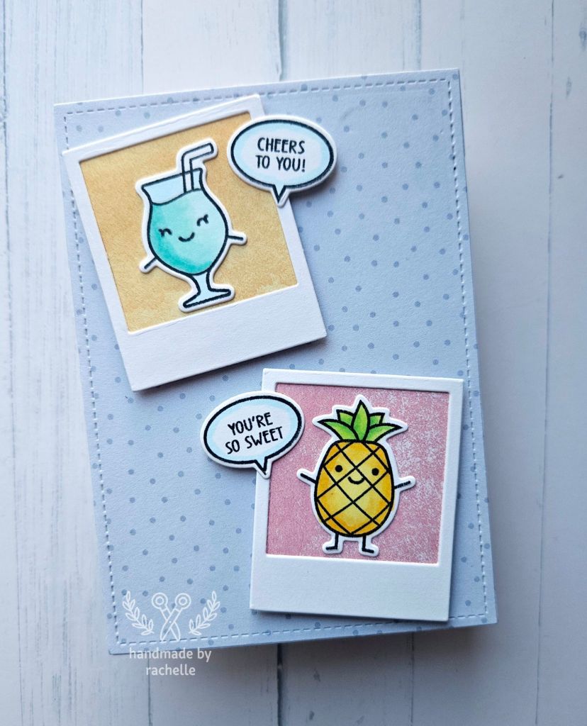That mini Polaroid frame is the perfect size to fit two on a 4 Bar card, and it was pretty fast to make a whole group of cards like this. I’m already planning some Christmas cards in a similar style.