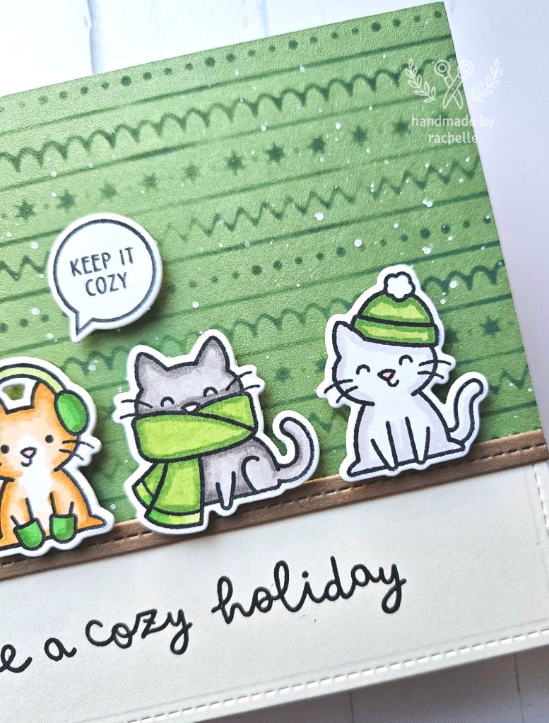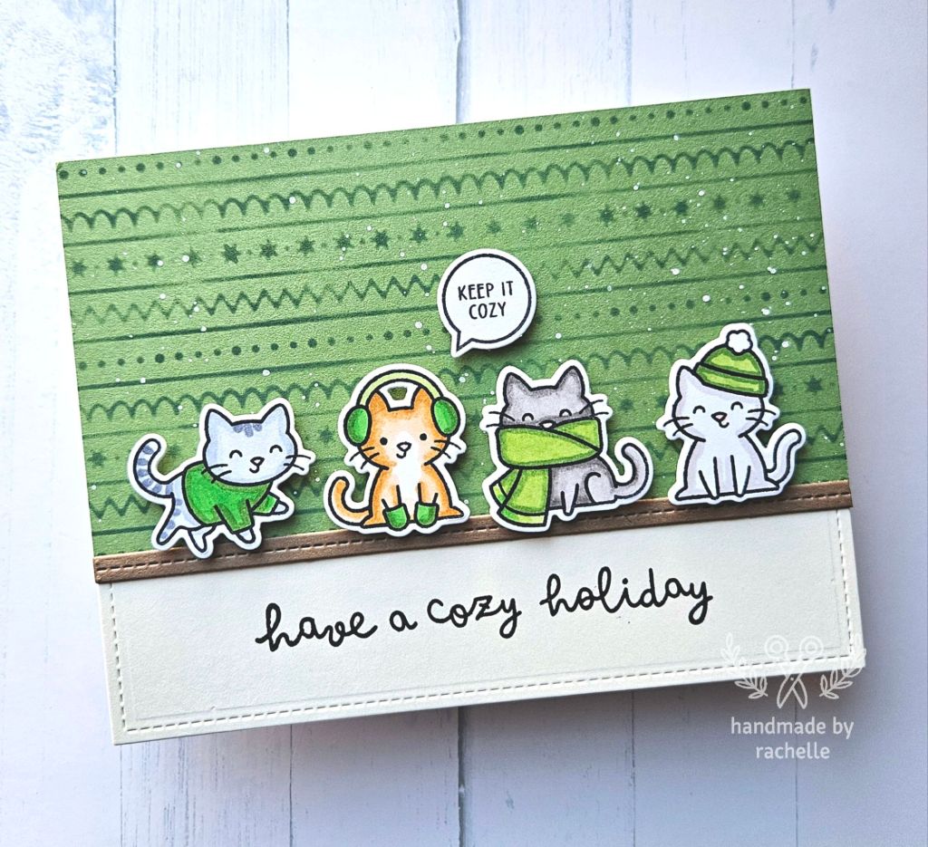 It’s a simple layout but I really like it and definitely plan on making more cards in this style. The color palette is very appealing to me. The sweater stencil is also really cute and I think there are lots of cute winter cards that it could be used on. Overall this was one of my favorite holiday cards that I made this year (and of course I made several duplicates.)