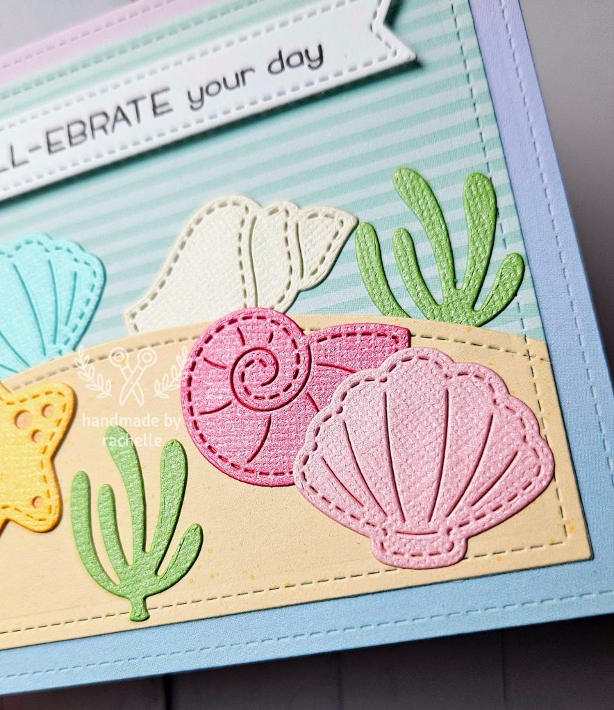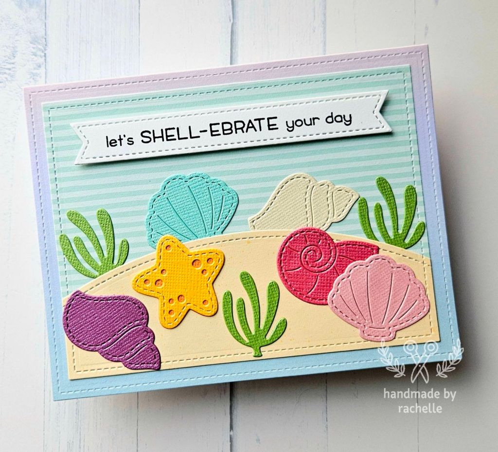 Just a simple card using Stitched Seashells, but I really like the shimmer cardstock and the perfect precision of that stitched banner! And I was so excited to have a sentiment from an older set that matched so well.