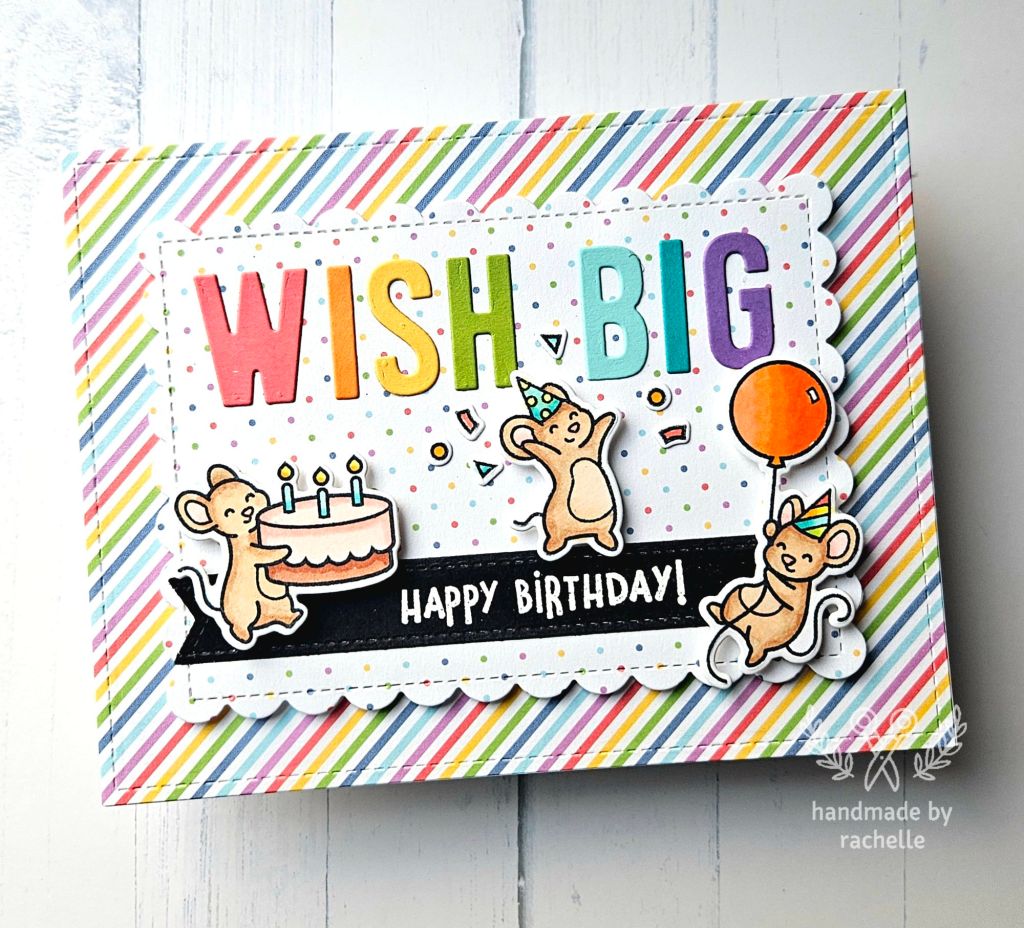 The Birthday Mice set was something available only as an in-store purchase with a minimum spend of $60, to support local stores. I do luckily have a store close to me that sells Lawn Fawn but they didn’t have a bunch of the sets that I would have wanted to buy. Still, I was able to find a few things I liked and I also got something I wouldn’t have otherwise purchased but that I did end up liking, so it was a success. And these Birthday Mice are really cute!