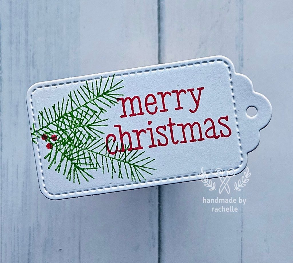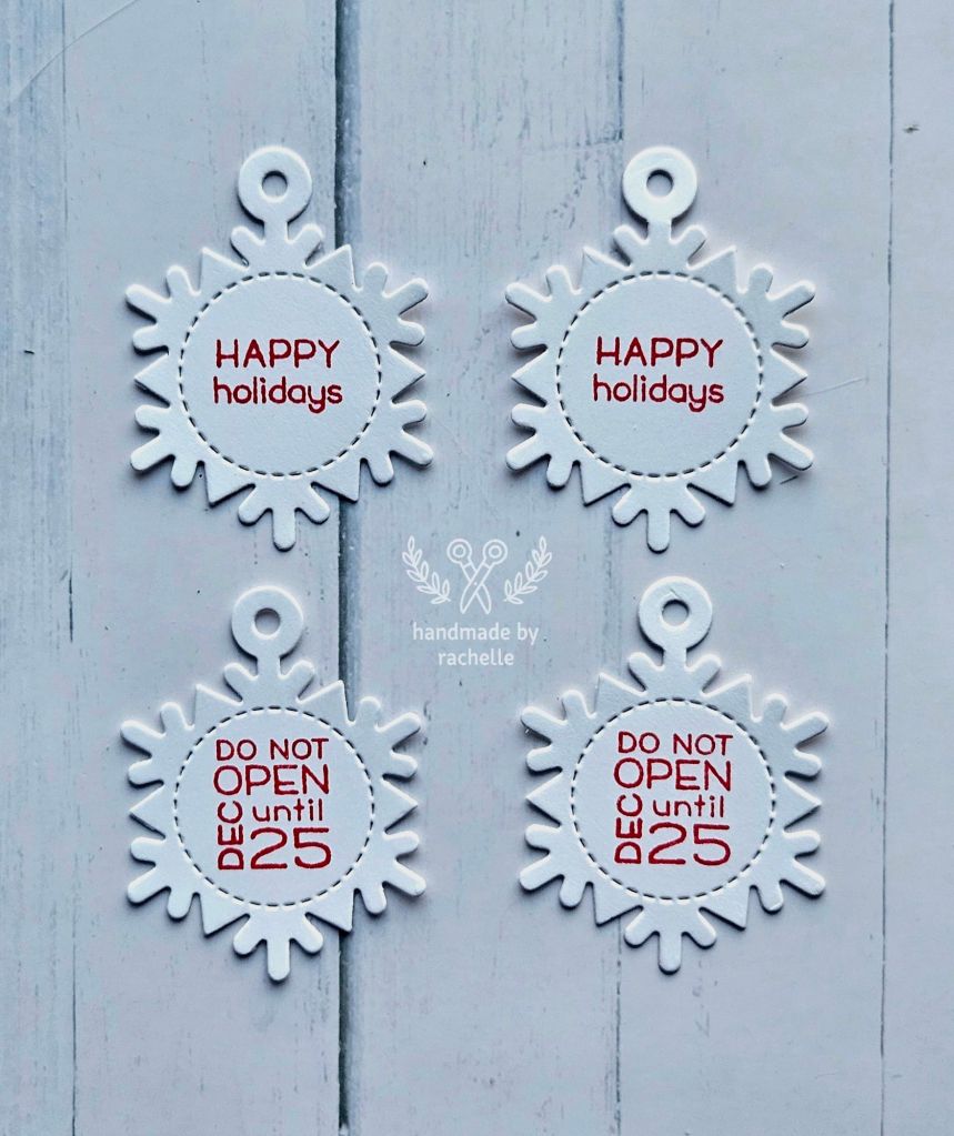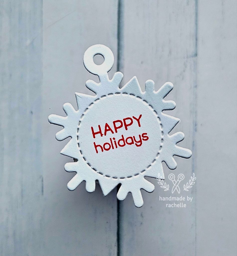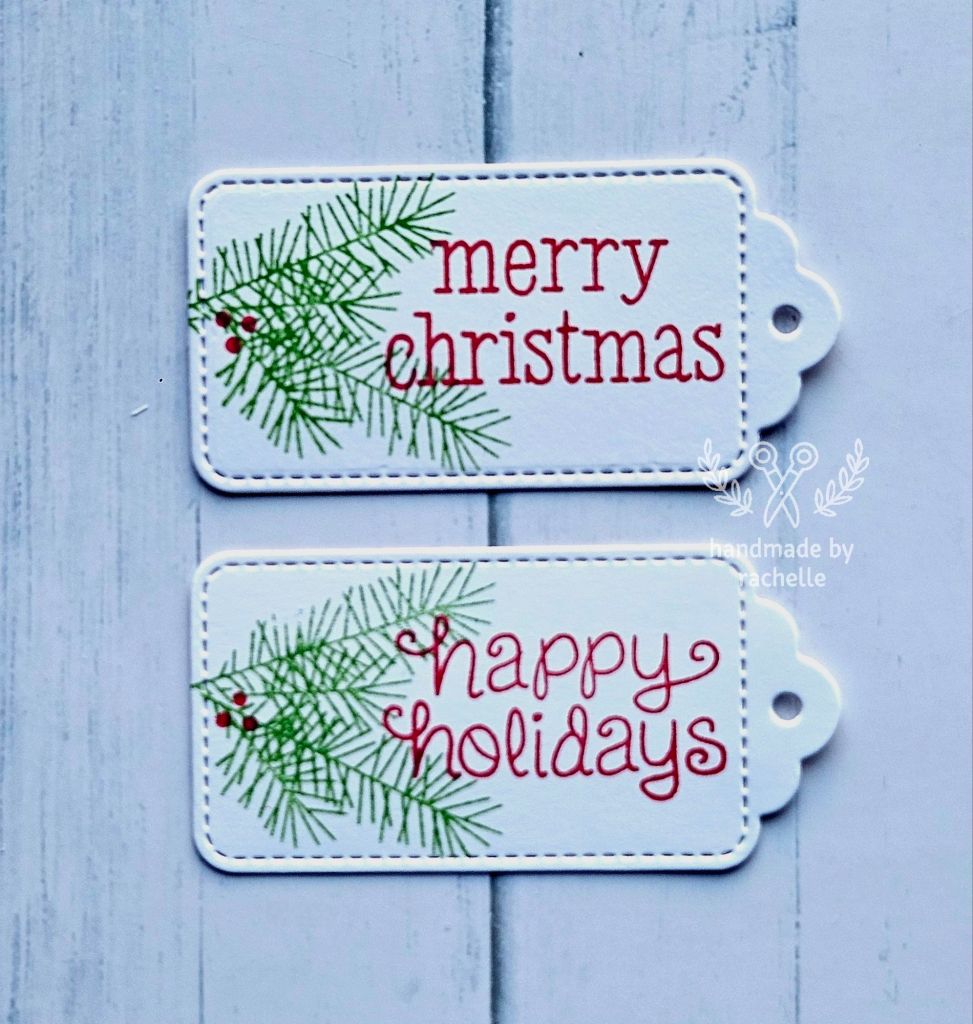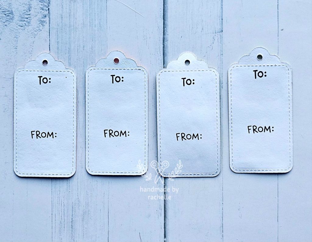 I had a super difficult time getting this die to cut all the way through, no matter how many times I tried. I would have made fuller wreaths or more of them but it was too frustrating. Hopefully next time I try to use it it’s better. I do like the way the tags turned out though, except I could have done better getting the bows to curl. Oh well!