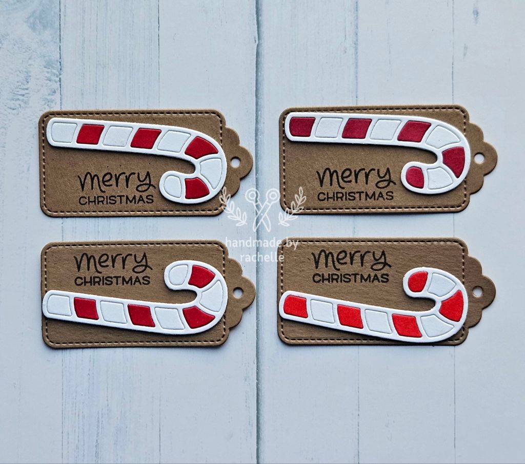 I made a mistake when making these tags. The candy canes on the top two tags should have been angled in the opposite direction. I just lost track when making them. I also tried several different shades of red and I’m not sure which one I like most. I wanted to add the sprig of holly to them but decided to just leave it as is. I’ll have to add it the next time I make these.