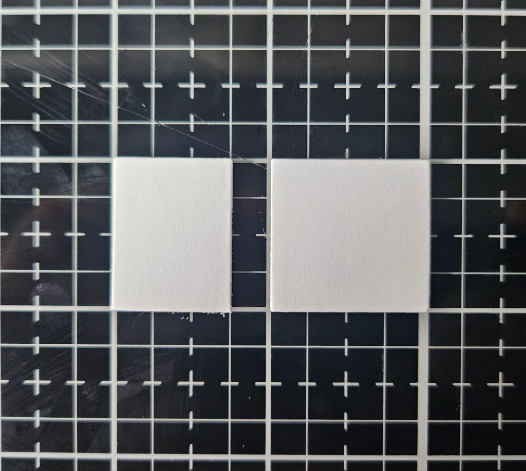 For the individual spaces on the game board, the 4 square pieces on the corners were made with the inside/leftover piece of the smallest square from the Stitched Square Frames. And the rectangular pieces were made with the inside/leftover piece of the smallest rectangle from the Stitched Rectangle Frames, which was then also cut in half.