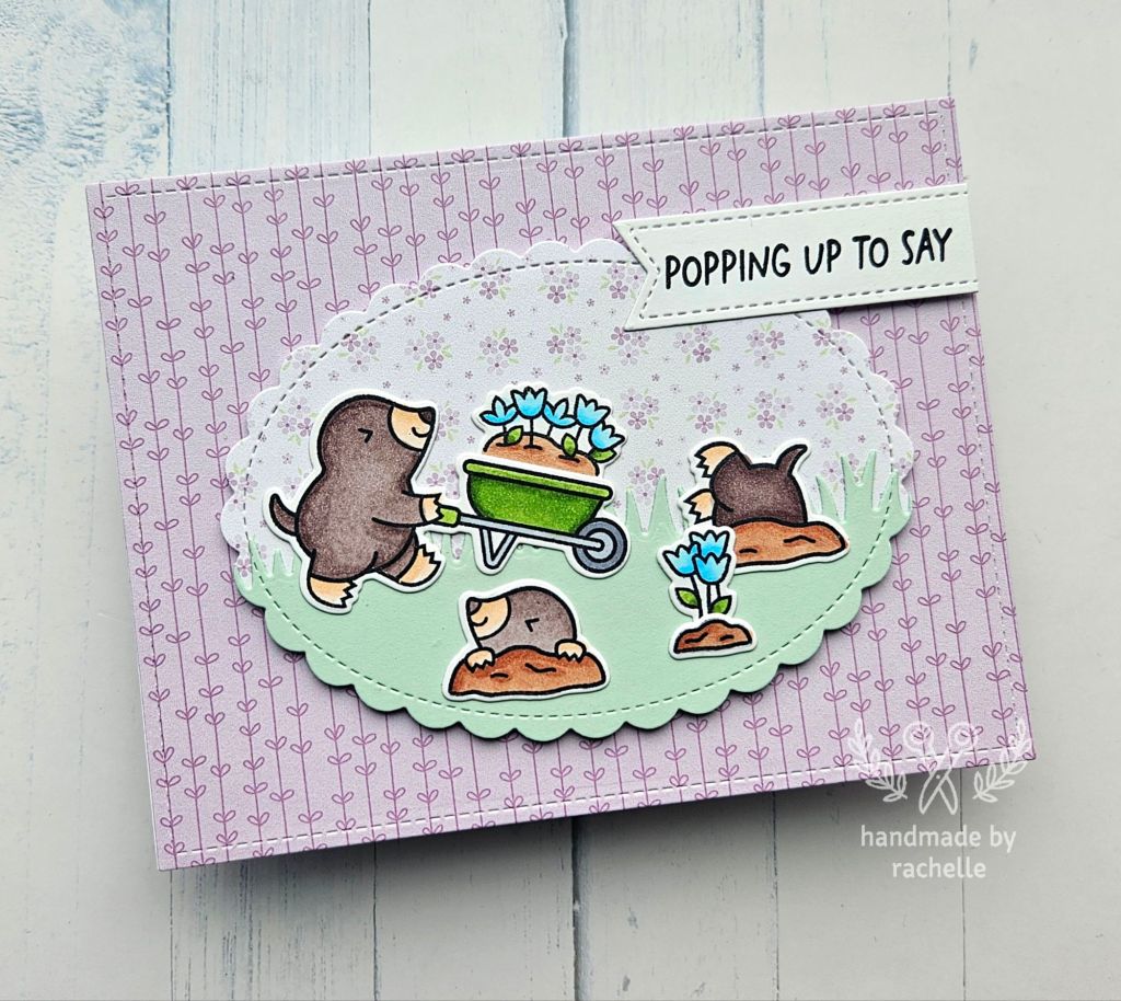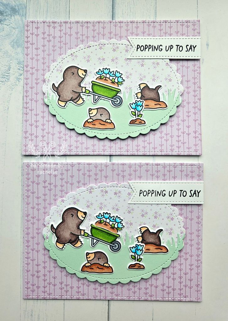 These cards were kind of a struggle. I started out with a different background and it wasn’t working, so I switched to this oval layout that I saw the Lawn Fawn design team use but I don’t know that the images fit quite right. I probably should have saved some of the images for another card and kept just one focal image in the center.